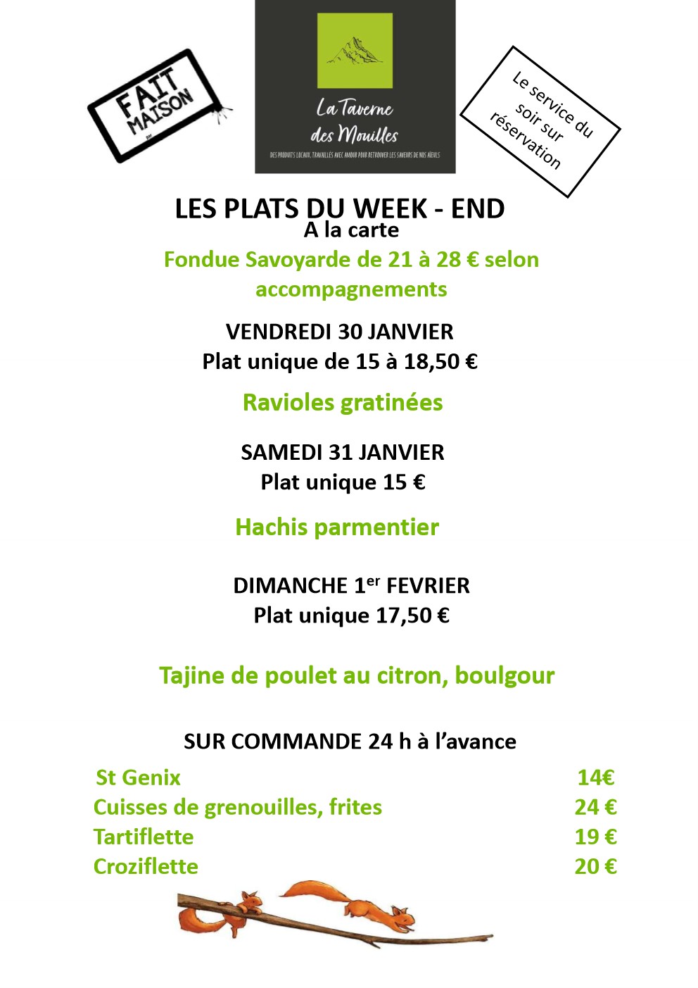 Réservation ou commande au 04 76 45 25 76.